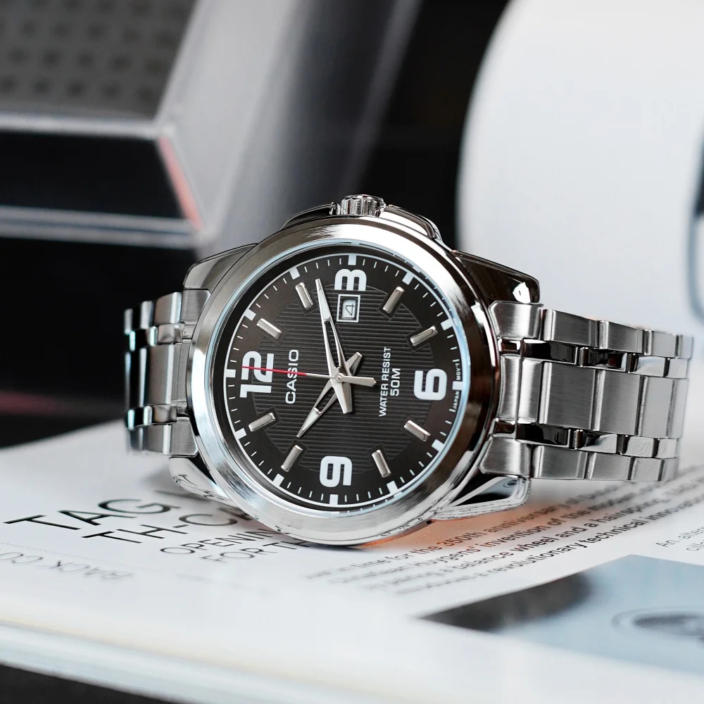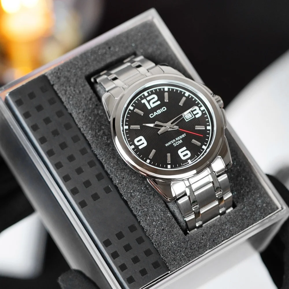 Чоловічий годинник Casio MTP-1314D-1A поєднує в собі класичний стиль і сучасні технології. Корпус з нержавіючої сталі та сріблястий браслет надають йому елегантного вигляду, що зробить його ідеальним доповненням до будь-якого образу. Мінеральне скло забезпечує високу стійкість до подряпин, а водонепроникність до 50 метрів дозволяє носити годинник під час занять водними видами спорту або дощу.