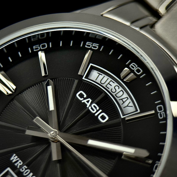Циферблат містить стрілки, індикатори годин, хвилин та секунд, а люмінесцентна підсвітка забезпечує зручність використання у темряві. Casio MTP-1381D-1A — це не просто годинник, а вірний партнер у кожній справі.