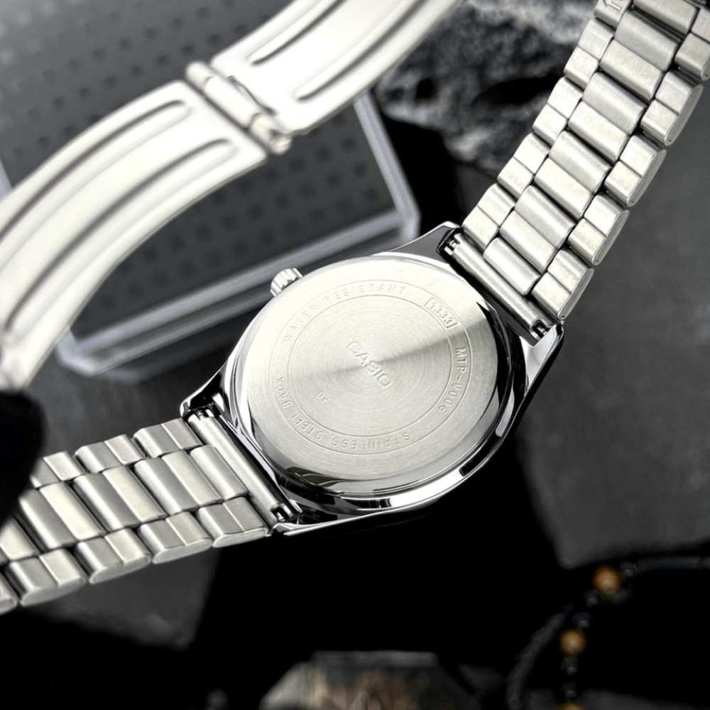 Пропонуємо вашій увазі класичні чоловічі годинники Casio MTP-V006D-7B2, які поєднують стиль і функціональність. З металевим корпусом і браслетом, виконаними зі сталі, ці годинники мають елегантний сріблястий колір, що підходить до будь-якого вбрання.