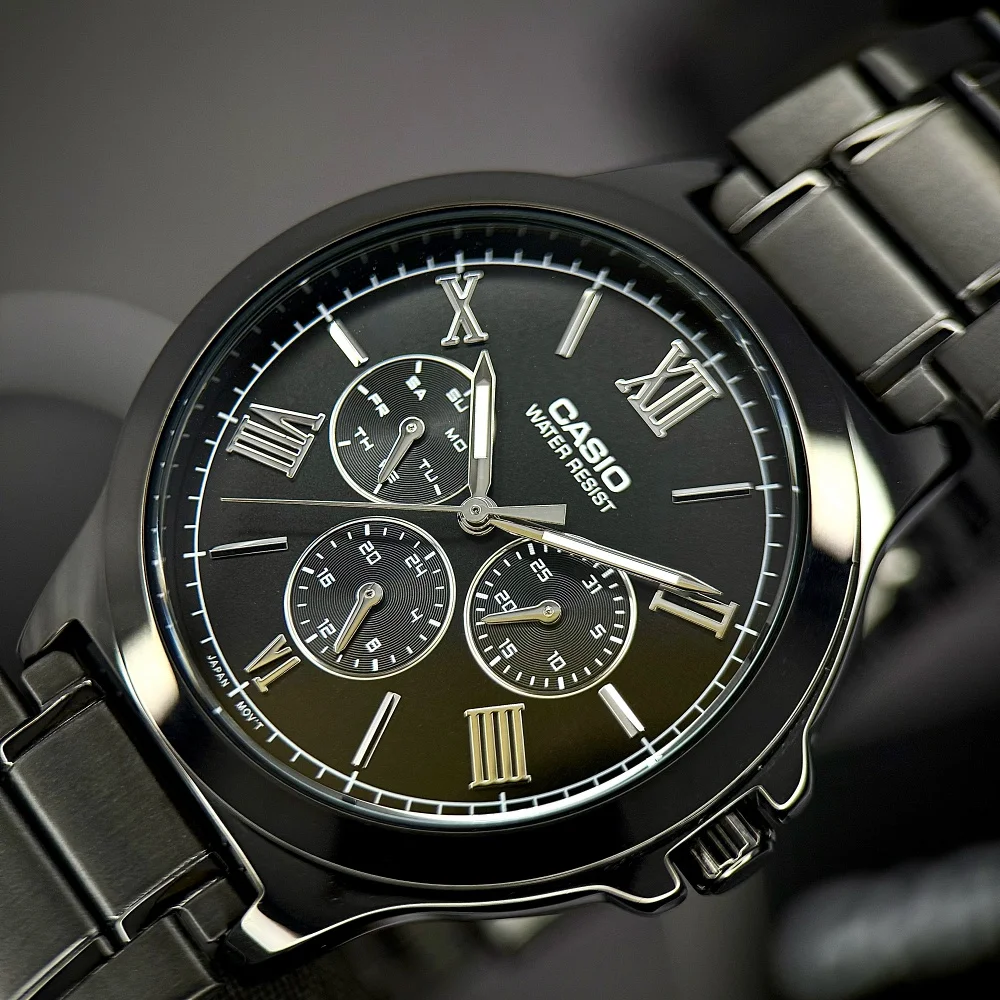 Ця модель також має індикацію годин, хвилин та секунд, а стильний циферблат з римськими цифрами надає годиннику вишуканого вигляду. Годинник Casio MTP-V300B-1A — це не просто пристрій для вимірювання часу, а справжній елемент вашого іміджу.