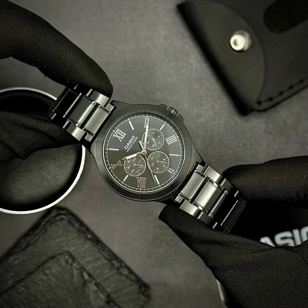 Годинник Casio MTP-V300B-1A — стильний та надійний аксесуар для сучасного чоловіка. Цей класичний модель оснащений кварцовим механізмом, що забезпечує точний хід, та витриманим чорним корпусом з нержавіючої сталі. Діаметр корпусу складає 41 мм, що надає годиннику строгого і водночас елегантного вигляду.