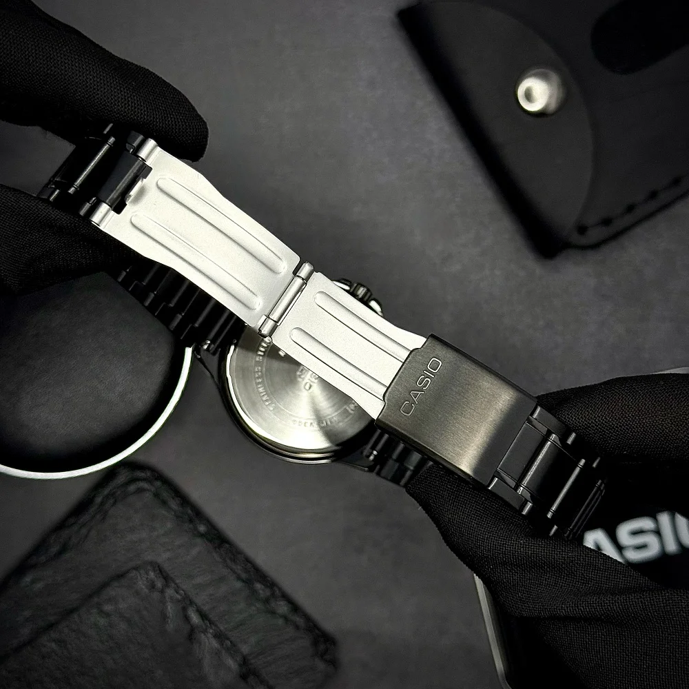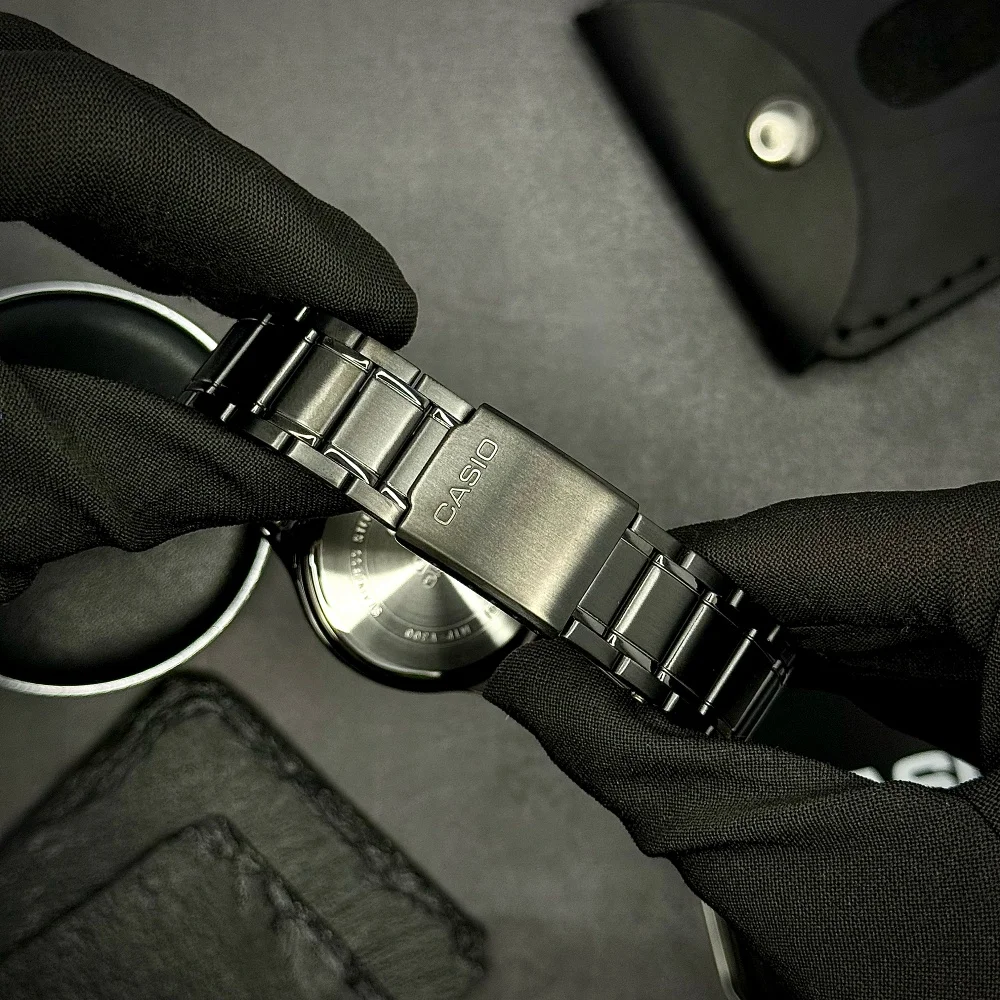 Casio MTP-V300B-1A водонепроникний до 50 метрів, що робить його ідеальним доповненням для активного способу життя. Скло годинника виготовлене з міцного мінерального скла, а підсвічування — люмінесцентне, що дозволяє легко зчитувати час у темряві. Ремінець з металу забезпечує комфортну посадку на зап’ясті та підкреслює стиль.