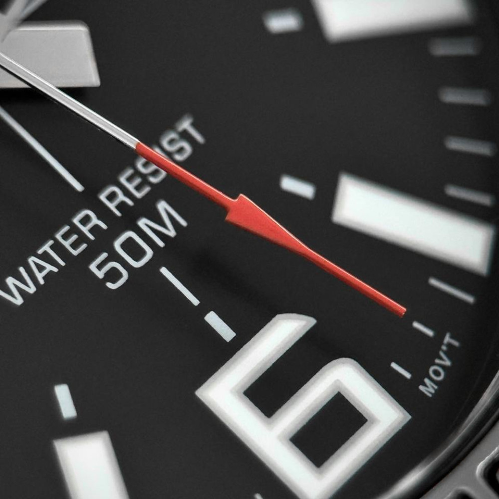 Циферблат годинника має стрілочний формат з арабськими цифрами та індексами, що забезпечує легкість у читанні часу. Мінеральне скло гарантує високу стійкість до подряпин, а кварцовий механізм забезпечує точність ходу.
