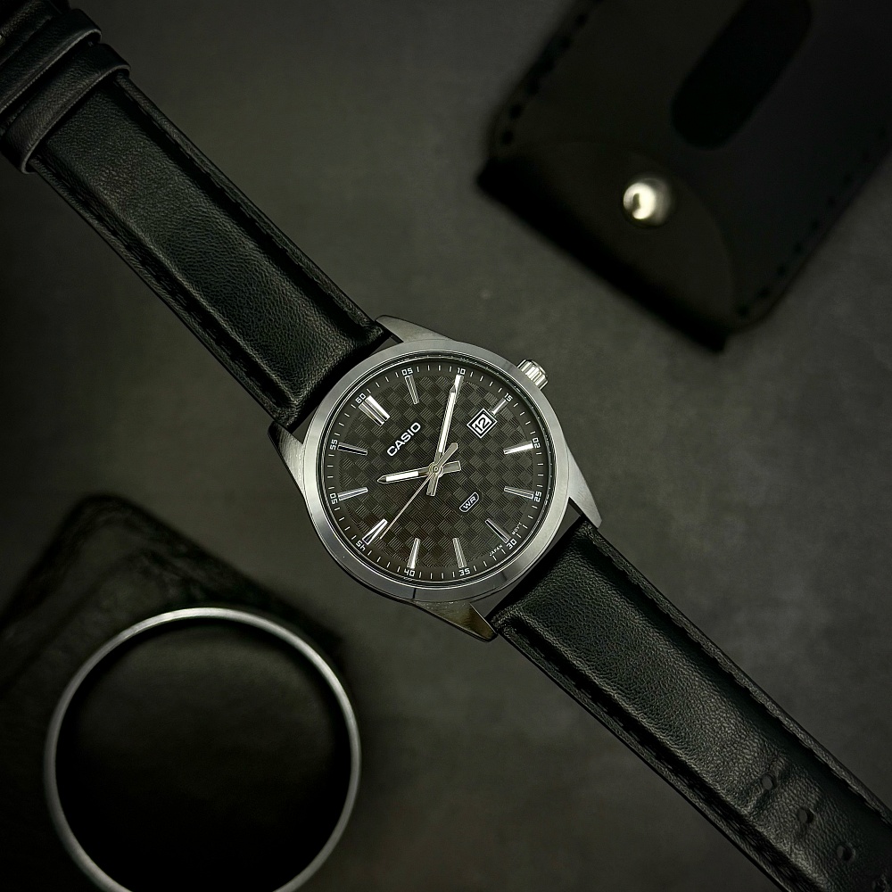 Casio MTP-VD03L-1A – це елегантний чоловічий годинник, який вдало поєднує стиль та функціональність. Часомір виготовлений з якісної латуні, а його сріблястий корпус оточений стійким до подряпин мінеральним склом. Класичний круглий дизайн з індексами на циферблаті підкреслює елегантність, а чорний шкіряний ремінець забезпечує комфорт під час носіння.