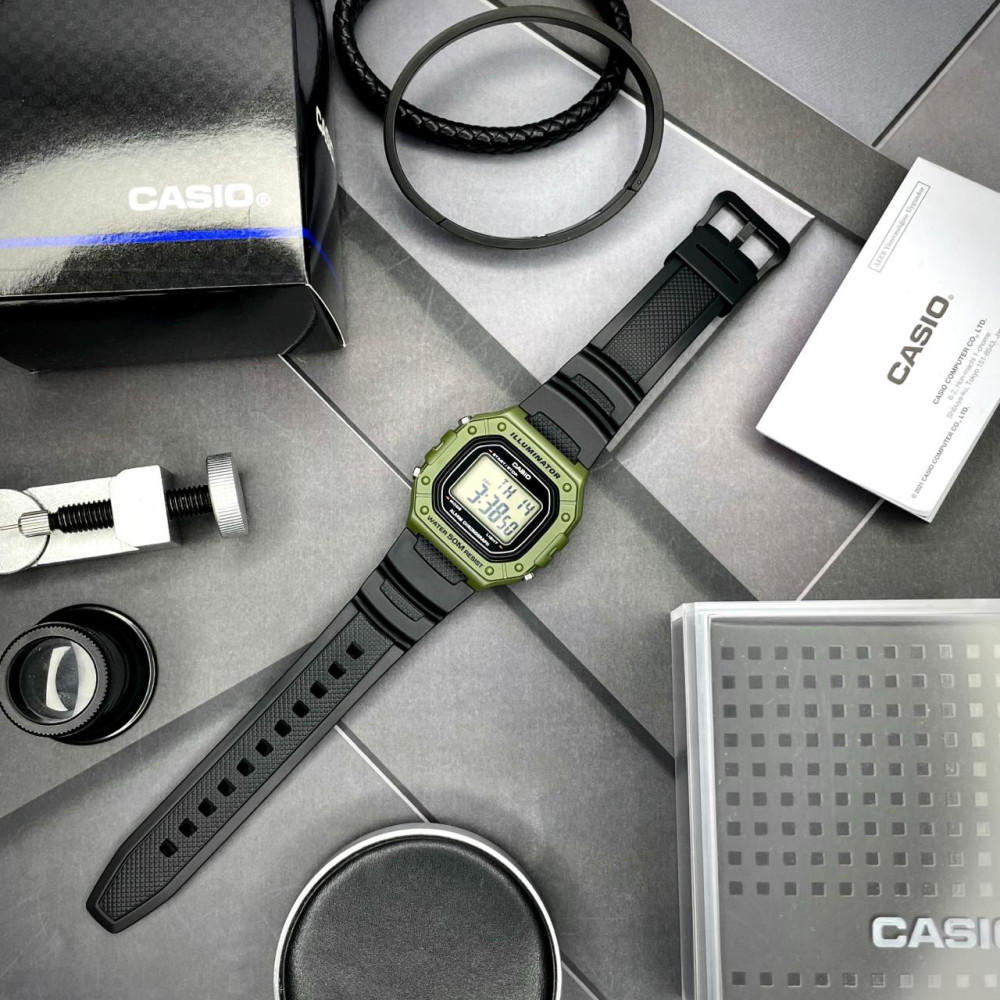 Темно-зелений корпус та чорний ремінець роблять Casio W-218H-3A стильним аксесуаром, який підходить до будь-якого спортивного одягу. Годинник має компактні розміри 44x43 мм та вагу всього 50 г, що забезпечує комфорт у користуванні.