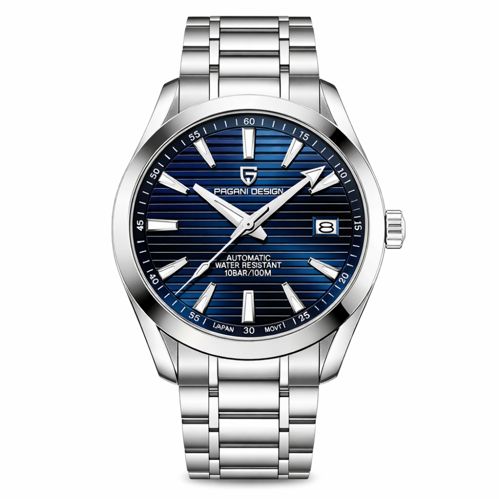 Стильний механічний годинник Pagani Design PD-1688 поєднує в собі елегантність та функціональність. Корпус і ремінець виготовлені з нержавіючої сталі, що забезпечує не тільки міцність, але й сучасний вигляд. Сапфірове скло захищає циферблат, який оснащений люмінесцентною підсвіткою для зручності при слабкому освітленні. Годинник демонструє години, хвилини, секунди та дату, а також має водонепроникність до 100 м, що робить його ідеальним для активного способу життя.