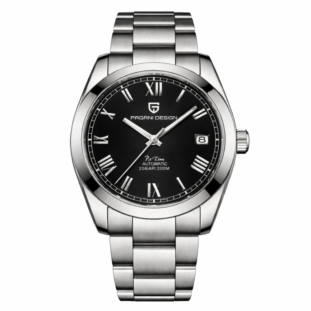 Цей елегантний чоловічий годинник від бренду Pagani Design — ідеальне поєднання стилю та функціональності. Корпус виконаний з високоякісної нержавіючої сталі сріблястого кольору, а сапфірове скло забезпечує чудову стійкість до подряпин. Механічний механізм з автопідзаводом гарантує точність і надійність, а функція календаря дозволяє відстежувати дати.