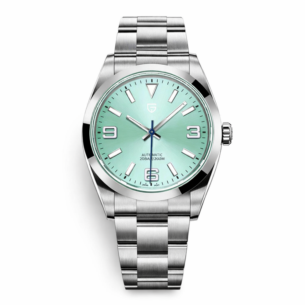 З круглим циферблатом, виконаним у сріблястих і синіх відтінках, ви легко зможете зчитувати час завдяки чітким арабським цифрам і індексам. Сапфірове скло забезпечує відмінний захист від подряпин. Годинник працює на механічному механізмі з автопідзаводом і має люмінесцентне підсвічування, що дозволяє користуватися ним у темряві. Довжина браслета становить 21 см, а ширина — 20 см, що забезпечує комфортну посадку на зап'ясті.