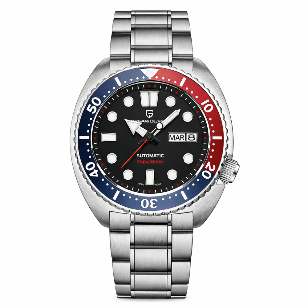 Годинник Pagani Design PD-1696 Silver-Black Pepsi Steel – це стильний чоловічий аксесуар, виконаний з нержавіючої сталі. Він має круглу форму корпусу та сапфірове скло, що забезпечує високу міцність і довговічність. Довжина ремінця складає 22 см, а ширина – 22 см. Годинник водонепроникний до 200 метрів, що робить його ідеальним для водних видів спорту.