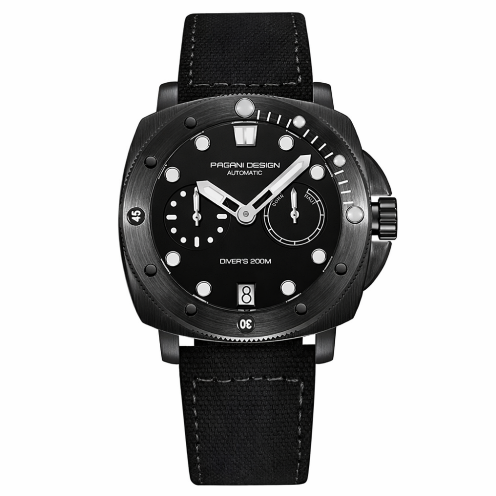 Годинник Pagani Design PD-1767 Black — це стильний та надійний аксесуар для сучасного чоловіка. Він виготовлений з нержавіючої сталі, має механічний механізм з автопідзаводом і витримує водонепроникність до 200 метрів. Скло годинника — сапфірове, що забезпечує високу стійкість до подряпин. Дизайн годинника поєднує елементи casual та класичного стилю, з круглою формою корпусу та чорним кольором. Циферблат з індексами та арабськими цифрами забезпечує зручність у зчитуванні часу. Ремінець виготовлений з нейлону, довжина та ширина якого складає 22 см. Годинник має гарантію на 12 місяців і важить 108 грамів, що робить його комфортним у носінні. Бренд Pagani Design гарантує високу якість в кожній деталі.