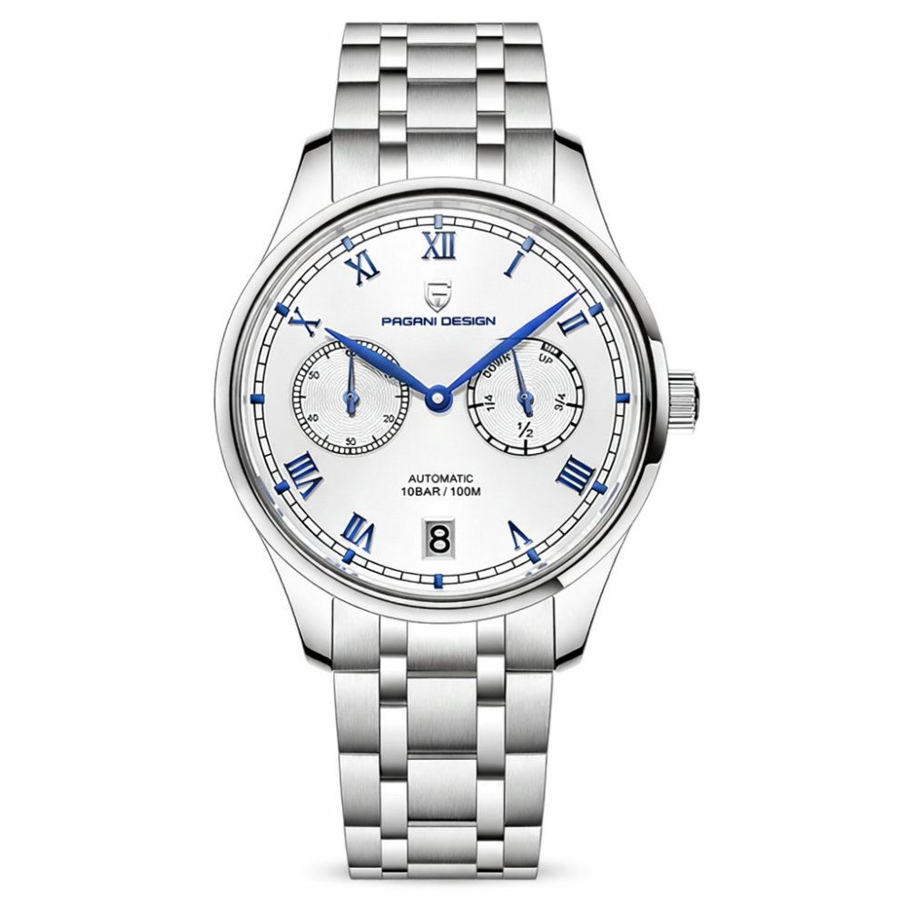 Годинник Pagani Design PD-1772 Silver-Silver — стильний механічний годинник з автопідзаводом, який поєднує в собі елегантність і функціональність. Виготовлений з нержавіючої сталі, цей чоловічий годинник має круглий корпус розміром 41 х 41 мм і стрілочний циферблат зі сріблястим кольором. Сапфірове скло забезпечує високу стійкість до подряпин, а водонепроникність 100 м гарантує надійність в будь-яких умовах. Годинник також оснащений календарем та індикацією годин, хвилин і секунд, а класичний та casual стиль роблять його ідеальним доповненням до будь-якого образу. Гарантія на годинник становить 12 місяців.