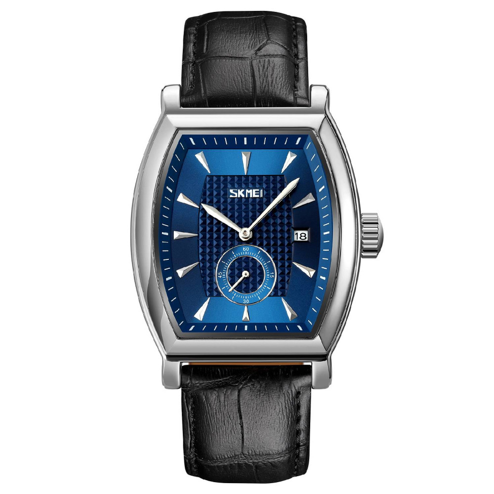 Годинник Skmei 9306SIBU Silver-Blue - це стильний чоловічий аксесуар, який поєднує в собі класичний дизайн та сучасні технології. Корпус виготовлений з якісного металу сріблястого кольору, а ремінець - з шкіри чорного відтінку, що забезпечує комфорт при носінні. Модель має прямокутну форму та розміри 52 х 40 мм. Водонепроникність до 30 м дозволяє використовувати годинник у повсякденному житті. Оснащений кварцовим механізмом, годинник забезпечує точний час, а також функцію календаря. Мінеральне скло додає надійності та стійкості до подряпин. Годинник має індикацію годин, хвилин, секунд та числа. Гарантія на дану модель складає 12 місяців. Вага годинника - 59 г, а довжина ремінця - 26 см з шириною 22 см. Бренд: Skmei.