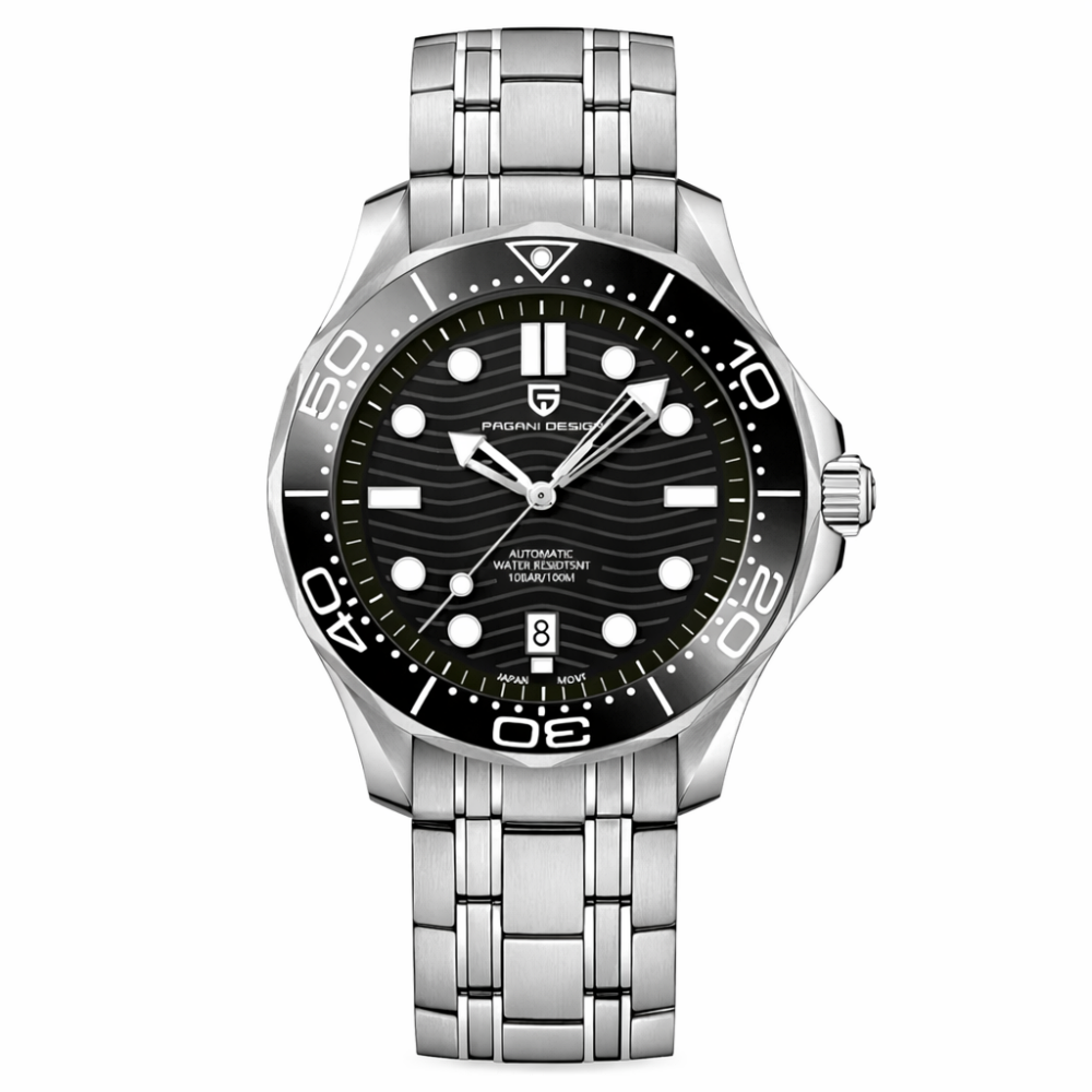 Представляємо годинник Pagani Design PD-1685 у стильному сріблясто-чорному виконанні. Цей чоловічий годинник виготовлений із нержавіючої сталі та обладнаний сапфіровим склом, що надає йому елегантного вигляду та довговічності. Водонепроникність до 200 метрів робить його ідеальним для активних людей.