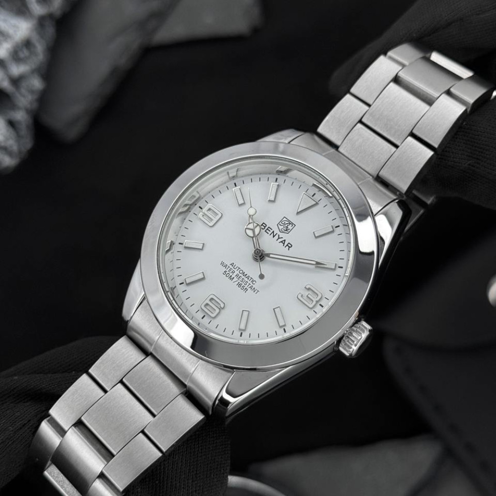 Часы Benyar BY-5177 White – это стильный и элегантный аксессуар, который подходит для современного мужчины. Его классический круглый корпус из серебристого металла диаметром 41 мм выглядит очень привлекательно и придает солидность образу. Часы оснащены механическим механизмом с автоподзаводом, что гарантирует точность и надежность.