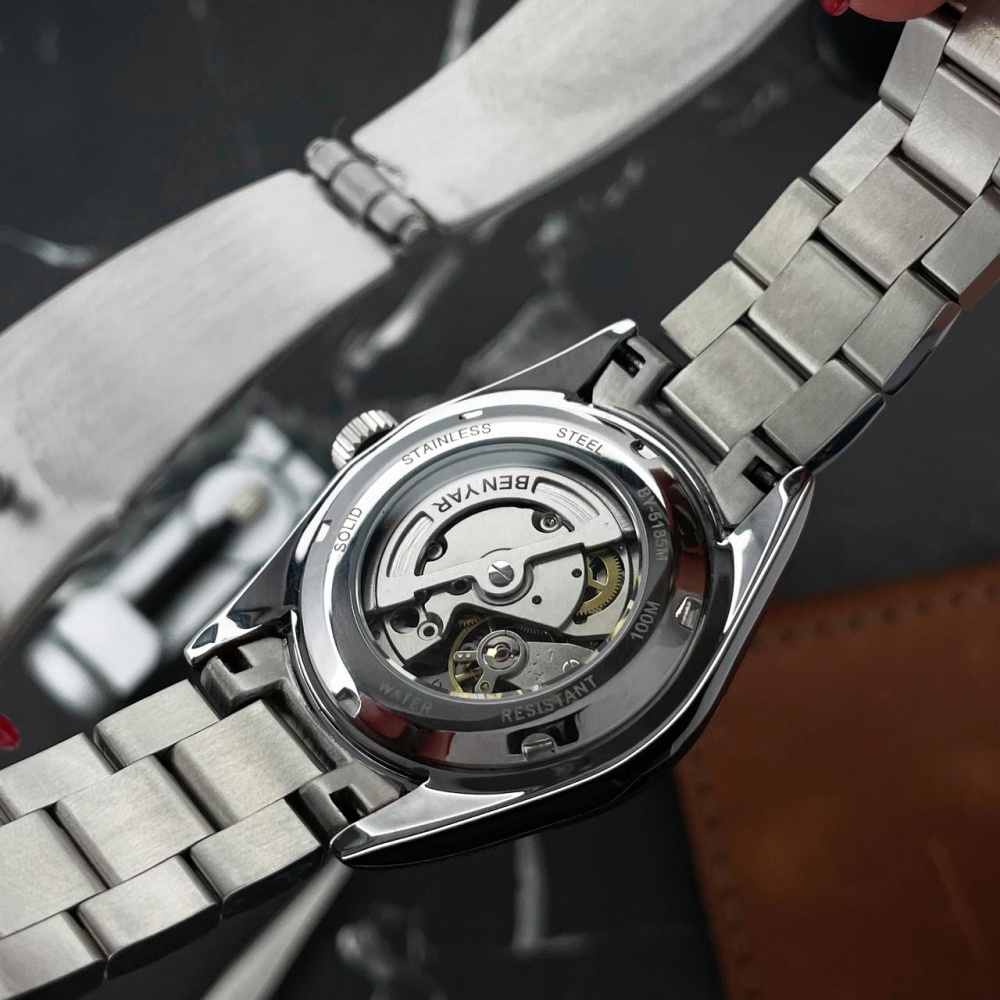 Представляем часы Benyar BY-5185 Blue – стильный аксессуар для современного мужчины. Эти механические часы с автоподзаводом сочетают в себе классические элементы и современный дизайн. Корпус из высококачественной стали имеет диаметр 38 мм и водонепроницаемость до 100 метров, что делает его отличным выбором для активного образа жизни.