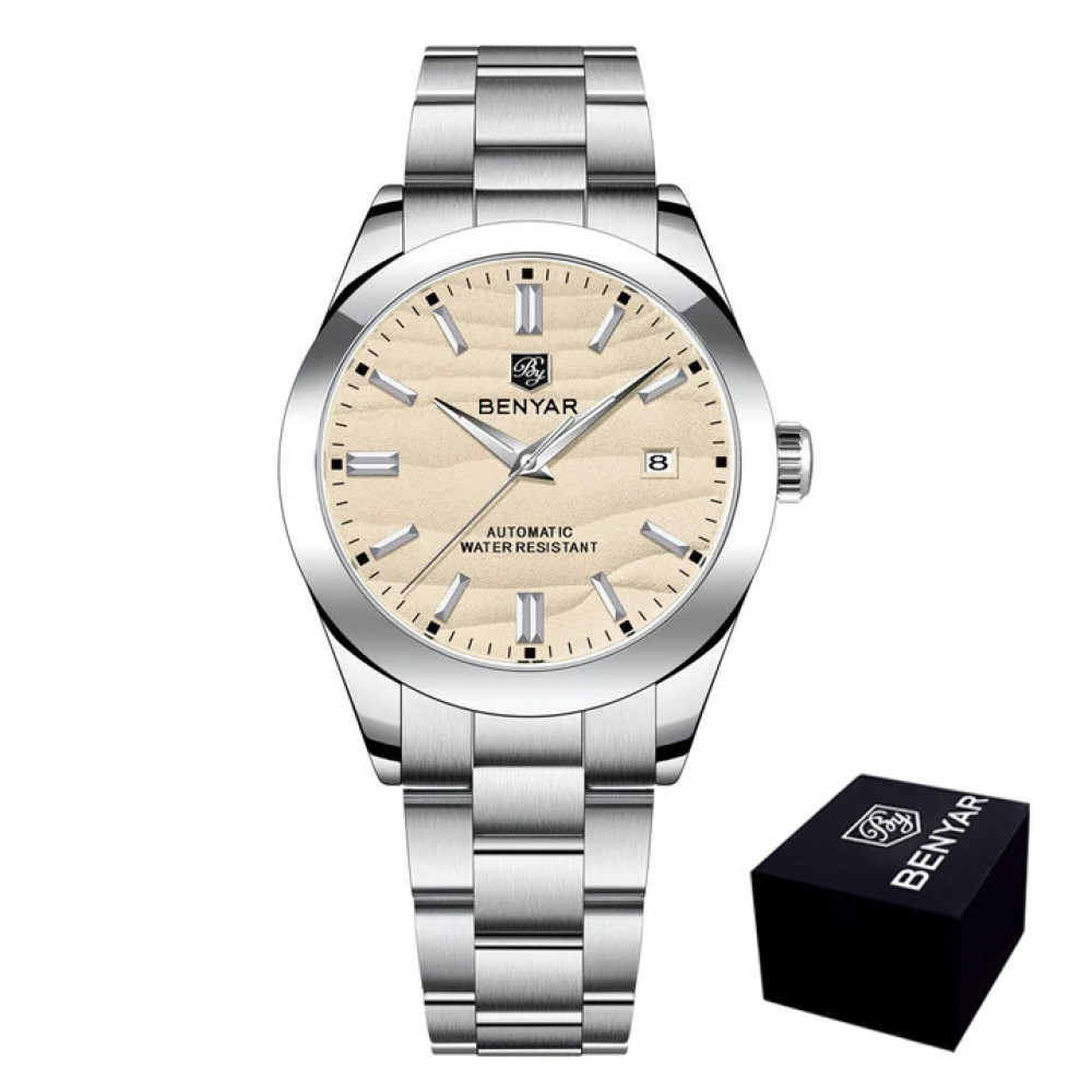 Откройте для себя стиль и функциональность с мужскими часами Benyar BY-5208. Этот элегантный аксессуар имеет серебристый металлический корпус диаметром 40 мм и круглую форму, что придает ему классический вид. Часы оснащены механическим механизмом с автоподзаводом, а стойкое минеральное стекло защищает от царапин, обеспечивая дополнительную надежность.