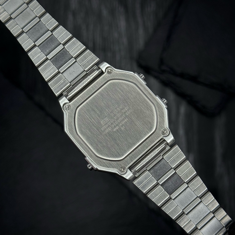 - Винтажный стиль – квадратный цифровой циферблат в стиле классических Casio 80-х годов.