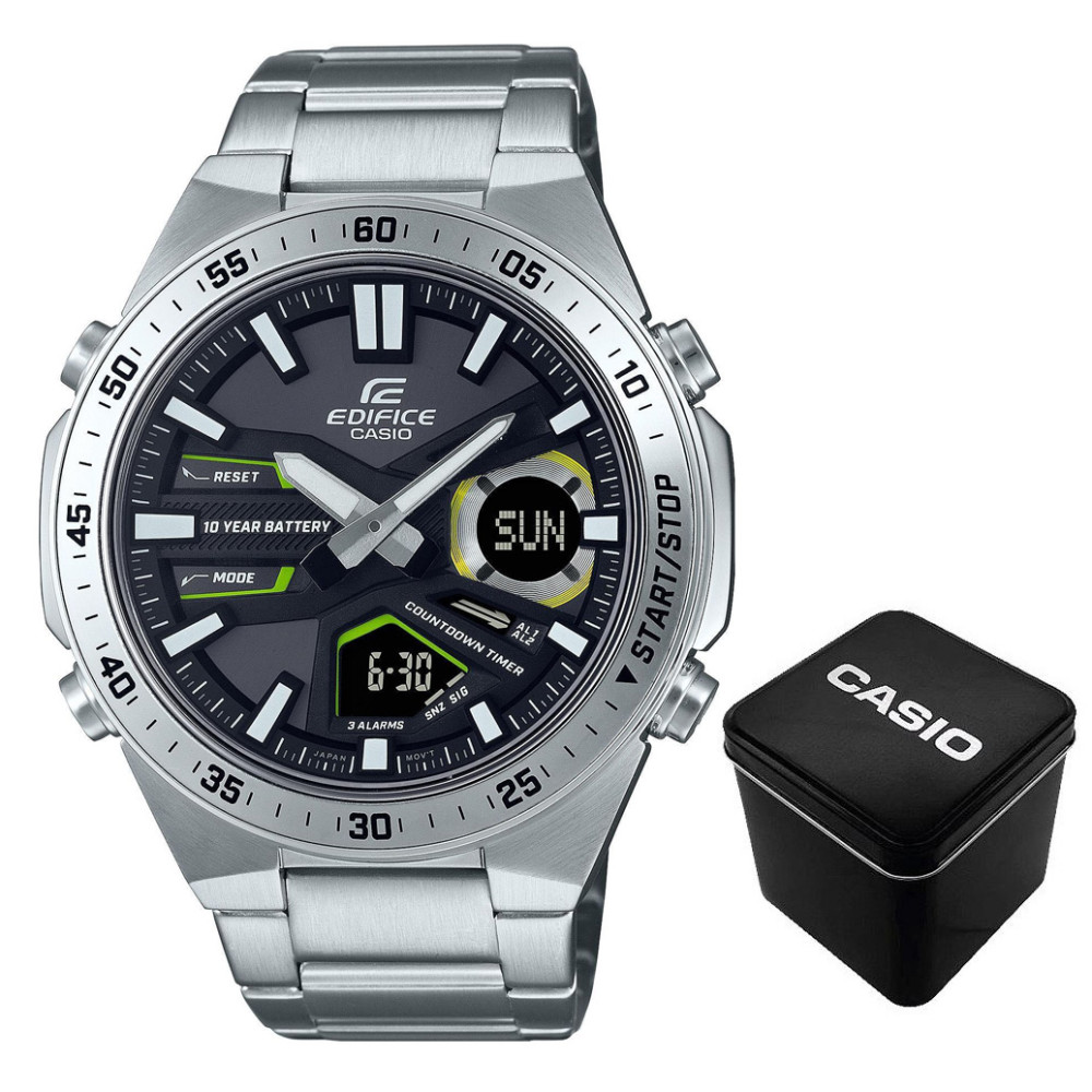 Циферблат Украины индексацию часов, минут и секунд, а также показывает день недели и дату. Ремешок из нержавеющей стали обеспечивает комфорт во время ношения и придает элегантность. Часы Casio EFV-C110D-1A3 – это отличный выбор для тех, кто ценит качество и стиль. Прекрасность 24 месяца придает уверенности в долговечности этого изделия.