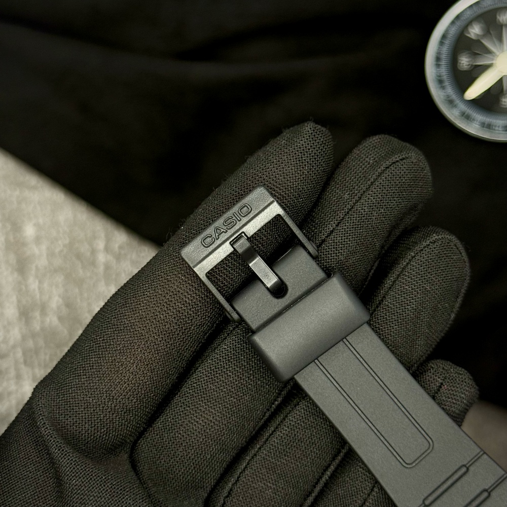 Модель имеет водонепроницаемость до 30 метров, что делает ее пригодной для повседневной носки даже во время дождя или занятий спортом. Пластиковое стекло придает легкости, а вес часов всего 57 граммов обеспечивает комфорт при ношении.