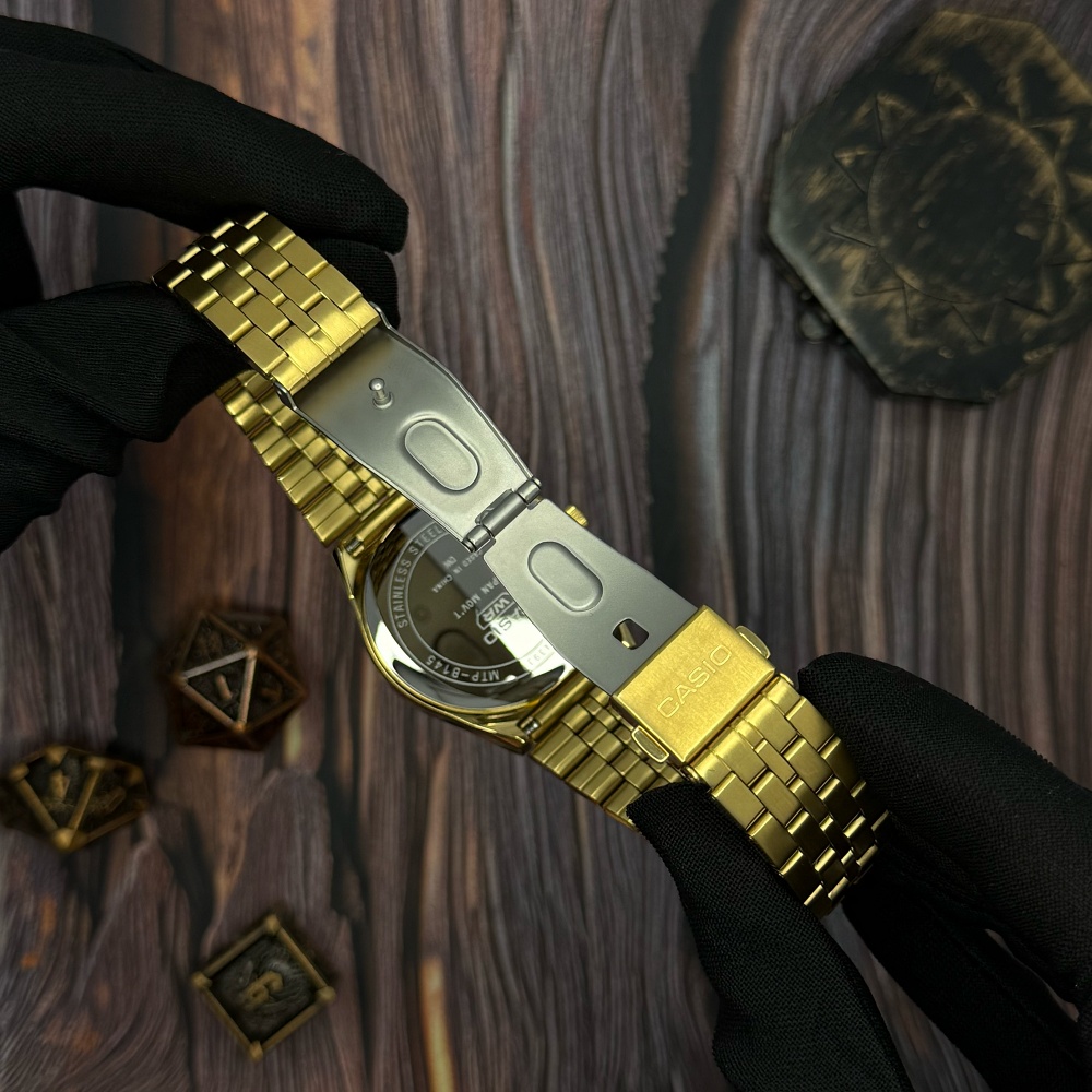Представляем вам стильные мужские часы Casio MTP-B145G-9A, которые сочетают в себе элегантный классический дизайн и высокую функциональность. Изготовленные из нержавеющей стали, эти часы имеют долговечный золотистый корпус и браслет, придающий ему роскошь. Минеральное стекло обеспечивает надежную защиту от царапин, а водонепроницаемость до 50 метров делает его практичным для повседневного использования.
