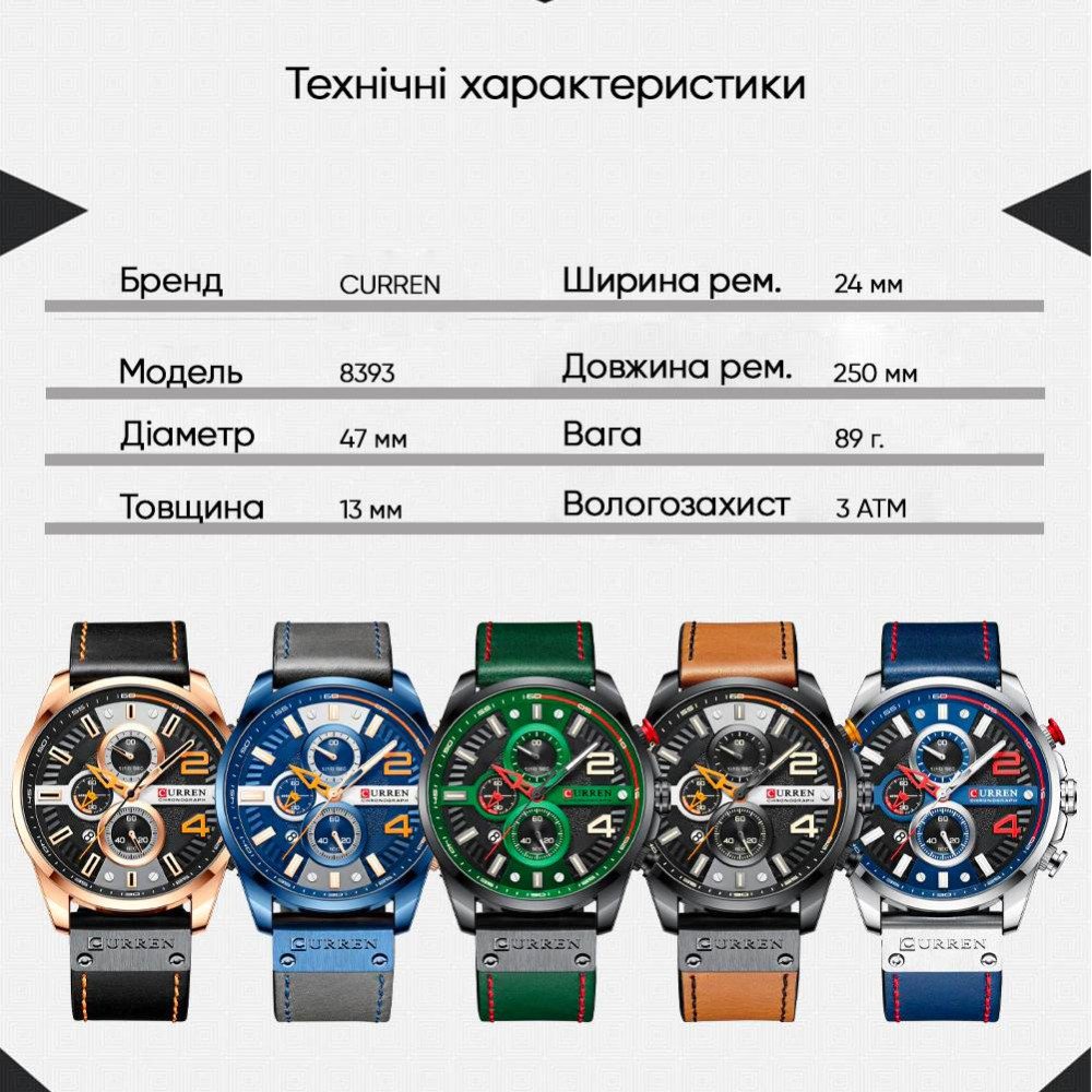 Часы Curren 8393 Black – это стильный аксессуар для современного мужчины. Благодаря водонепроницаемости до 30 метров вы можете быть уверены в его надежности в любых условиях. Корпус изготовлен из металла, а ремешок – из качественной кожи бежевого цвета, что обеспечивает комфорт и удобство в ношении. Часы оборудованы кварцевым механизмом и стрелочным циферблатом, на котором четко отображаются часы, минуты, секунды и дата. Функции хронографа и секундомера пригодятся во многих ситуациях. Минеральное стекло и круглая форма корпуса подчеркивают классический стиль, удачно сочетающийся с casual-образом. Гарантия на часы составляет 12 месяцев. Вес 89 грамм делает его легким и комфортным. Curren 8393 Black – идеальный выбор для тех, кто ценит качество и стиль.