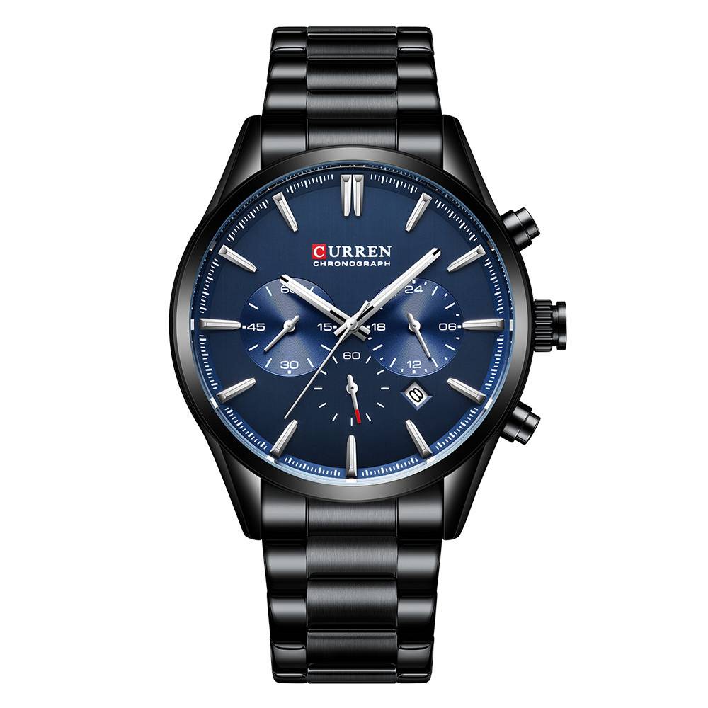 Часы Curren 8446 Black-Blue – это стильный мужской аксессуар, сочетающий в себе классический и casual дизайн. Корпус часов изготовлен из металла черного цвета, а минеральное стекло обеспечивает высокую стойкость к царапинам. Устройство имеет водонепроницаемость до 30 м, что позволяет носить его в повседневной жизни без ограничений.