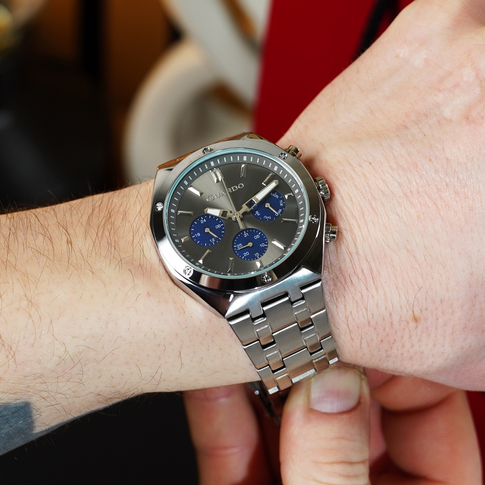 Модель Guardo 012781-5 оснащена кварцевым механизмом, который обеспечивает точный и стабильный ход на протяжении длительного времени. Это удобное решение для активного ритма жизни, так как не требует сложного обслуживания. Корпус изготовлен из прочных материалов, хорошо выдерживающих ежедневное использование и помогающих сохранять аккуратный внешний вид изделия. Циферблат имеет чёткое и понятное оформление, что позволяет быстро считывать время. Стекло защищает поверхность от внешних воздействий и способствует длительному сохранению эстетики. Благодаря удобному ремешку и эргономичной конструкции часы комфортно сидят на запястье в течение всего дня.