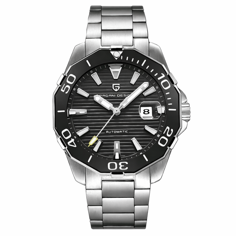 Часы Pagani Design PD-1617 Silver-Black – это стильный мужской аксессуар, сочетающий элегантность и функциональность. Изготовлен из нержавеющей стали, он имеет водонепроницаемость до 100 метров, что делает его идеальным для ежедневной носки и активного отдыха. Эти механические часы с автоподзаводом оснащены стрелочным циферблатом, на котором удобно отображаются часы, минуты, секунды и число. Люминесцентная подсветка обеспечивает хорошую видимость в темноте, а стильный серебристый цвет корпуса и браслета придает изысканность. Часы имеют размеры 47,6 х 47,6 мм и вес 180 г, что делает его комфортным для ношения. В комплекте предусмотрена гарантия на 12 месяцев. Страна производителя – Китай.