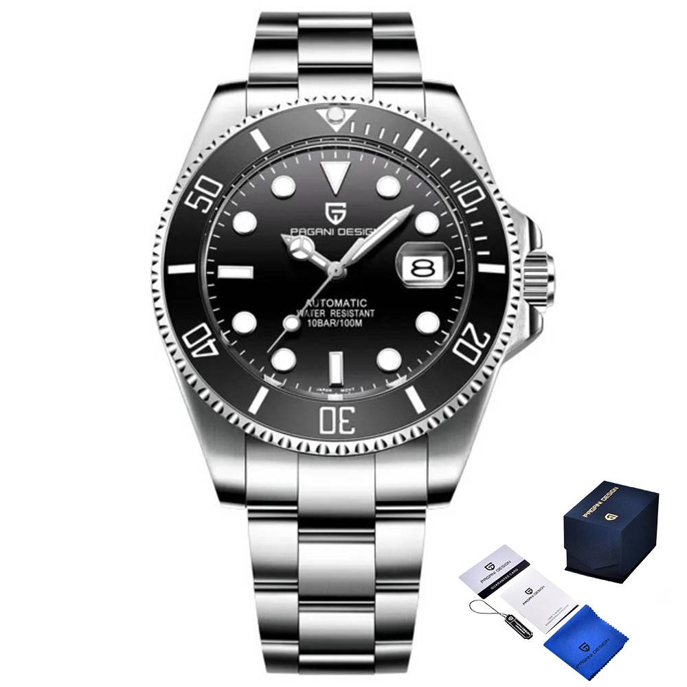 Часы Pagani Design PD-1639 Silver-Black – это классический мужской аксессуар, изготовленный из нержавеющей стали. Его круглый серебристый корпус имеет диаметр 43 мм и совмещается с комфортным браслетом из того же материала. Сапфировое стекло обеспечивает высокую стойкость к царапинам. Механизм с автоподзаводом сочетает функции календаря и индикацию часов, минут, секунд и числа. Водонепроницаемость до 100 м позволяет использовать часы в воде. Дополнительно, люминесцентная подсветка обеспечивает удобство использования в темноте. Гарантия на часы составляет 12 месяцев, а их вес - 162 г. Ideal для любителей классического стиля.