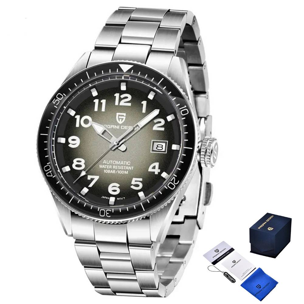 Часы Pagani Design PD-1649 Silver-Black Metal – стильный мужской аксессуар, сочетающий в себе элегантность и функциональность. Корпус и ремешок выполнены из нержавеющей стали серебристого цвета, что придает часам классический вид. Сапфировое стекло обеспечивает высокую стойкость к царапинам, а механический механизм с автоподзаводом гарантирует точность времени. Часы имеют водонепроницаемость до 100 метров, что делает его идеальным выбором для активного образа жизни. Циферблат выполнен в формате стрелок с арабскими цифрами и включает в себя функцию календаря. Люминесцентная подсветка позволяет считывать время в темноте. Размеры часов составляют 44 х 44 мм, вес – 173 г. Гарантия на продукт составляет 12 месяцев.