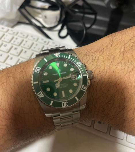 Часы Pagani Design PD-1661 Silver-Green — стильный мужской аксессуар, сочетающий элегантность и функциональность. Корпус изготовлен из нержавеющей стали и имеет круглую форму с привлекательной зеленой и серебристой отделкой. Сапфировое стекло обеспечивает высокую стойкость к царапинам. Благодаря водонепроницаемости до 100 м вы можете носить его во время плавания или занятий спортом. Механический механизм с автоподзаводом гарантирует точность и надежность. Часы оборудованы календарем и люминесцентной подсветкой для удобства использования в темноте. Индикация времени представлена арабскими цифрами, а браслет из нержавеющей стали обеспечивает комфорт при ношении. Длина ремешка составляет 22 см, ширина – 20 см, а вес часов – 154 г. Гарантия на часы составляет 12 месяцев. Произведено в Китае.