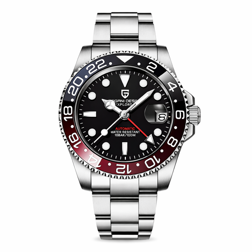 Часы Pagani Design PD-1662 Silver-Black-Red – это стильный мужской аксессуар с классическим дизайном. механизм с автоподзаводом гарантирует точность времени, а сапфировое стекло защищает. циферблат от царапин. Часы оснащены функцией календаря и имеют люминесцентную подсветку, обеспечивающую удобство в любое время суток. 20 см, а вес часов – 154 г. Гарантия на изделие составляет 12 месяцев.