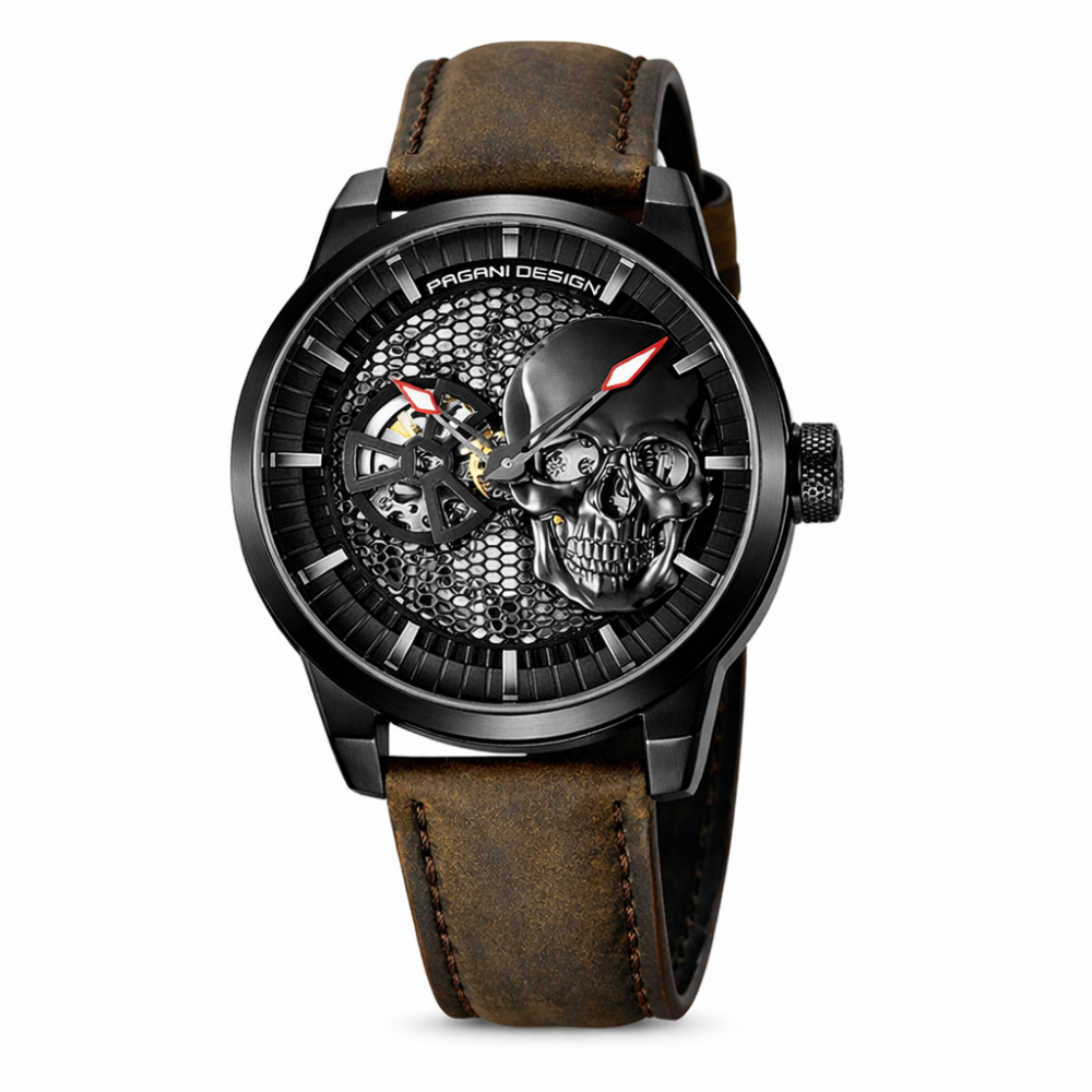 Часы Pagani Design PD-1665 All Black – идеальный выбор для мужчин, ценящих стиль и надежность. Эти механические часы с автоподзаводом порадуют вас водонепроницаемостью до 100 м, что позволяет использовать их во время водных видов спорта. Корпус изготовлен из нержавеющей стали черного цвета, а ремешок из натуральной кожи коричневого цвета придает элегантность.