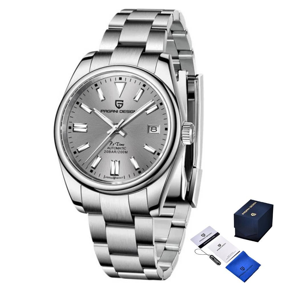 Часы Pagani Design PD-1690 Silver-Grey – это стильный мужской аксессуар, сочетающий в себе классический дизайн и современные технологии. Материал корпуса и ремешка изготовлен из нержавеющей стали, что обеспечивает высокую прочность и изящный вид. Водонепроницаемость до 200 м позволяет носить его в воде без всяких переживаний.