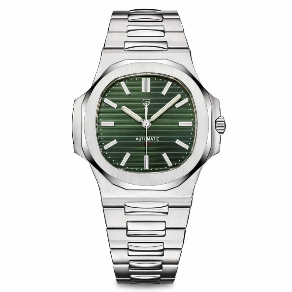 Дизайн Pagani Design PD-1728 Silver-Black построен на контрасте серебристого металлического корпуса и браслета с темным циферблатом, что формирует выразительный, но при этом строгий внешний вид. Циферблат читается легко благодаря четким меткам и стрелкам, которые хорошо отделены от фона, поэтому время удобно контролировать даже в быстром темпе. Металлический браслет обеспечивает надежную фиксацию на запястье и комфорт при длительном ношении, сохраняя аккуратный вид без лишнего ухода. Универсальная подача делает модель уместной в разных ситуациях — от работы и повседневных дел до более спокойных выходов. В целом часы выглядят сбалансированно и практично, оставаясь хорошим выбором для тех, кто ищет стильный аксессуар без перегруженности деталями.