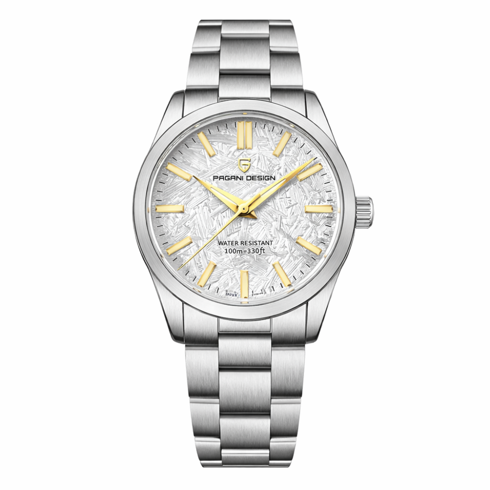 Эти кварцевые часы оснащены стрелочным циферблатом с индикаторами часов, минут и секунд. Люминесцентная подсветка обеспечивает удобство в темноте. Длина ремешка составляет 22 см, ширина – 20 см, а общий вес часов – 122 г. Гарантия на продукт составляет 12 месяцев. Данная модель отлично подойдет для повседневной носки в стиле casual или классическом. Производится в Китае под брендом Pagani Design.