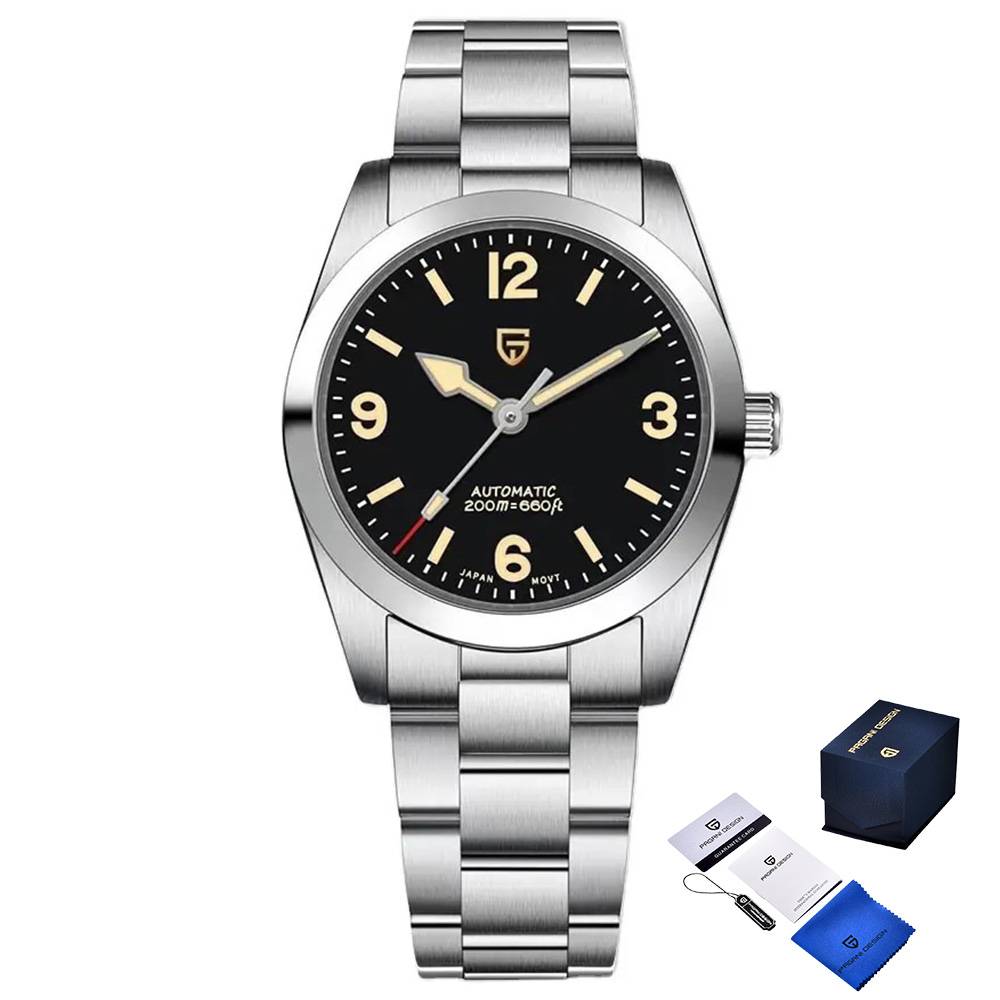 Мужские часы Pagani Design PD-1751 Silver-Black сочетают в себе стиль и функциональность. Корпус изготовлен из нержавеющей стали, что обеспечивает прочность и водонепроницаемость до 200 метров. Сапфировое стекло надежно защищает циферблат, на котором расположены стрелки и арабские цифры для удобства чтения времени. Часы имеют механический механизм с автоподзаводом и классический круглый дизайн. Люминесцентная подсветка позволяет удобно использовать часы в темноте. Длина ремешка составляет 21 см, ширина – 20 см. Серебристый корпус и браслет придают модный вид, а 12-месячная гарантия подтверждает качество бренда Pagani Design.