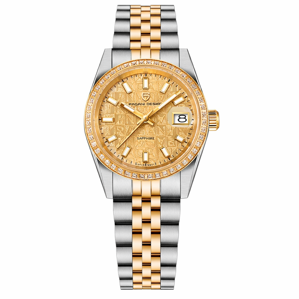 Представляем часы Pagani Design PD-1794M Silver-Gold-Gold – идеальный выбор для стильных мужчин, ценящих качество и элегантность. Эти механические часы с автоподзаводом оснащены надежным сапфировым стеклом и имеют водонепроницаемость до 50 метров, что делает его пригодным для различных видов активности.