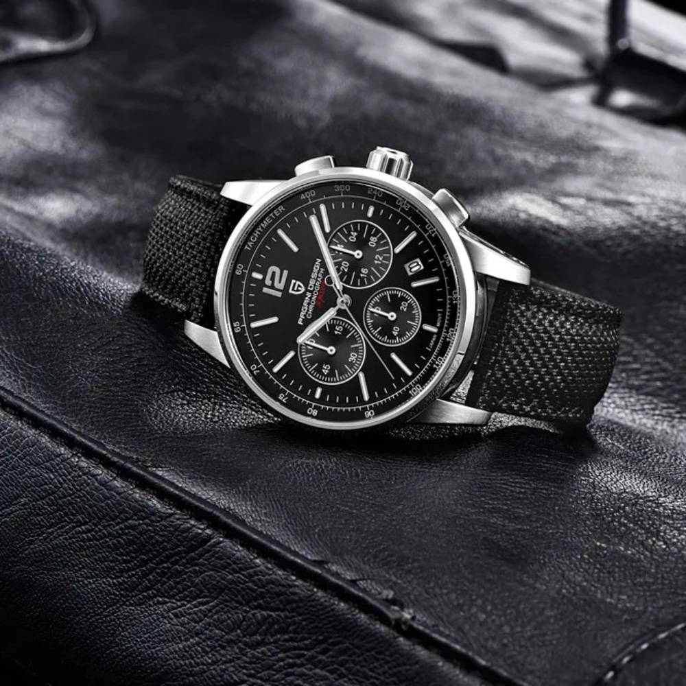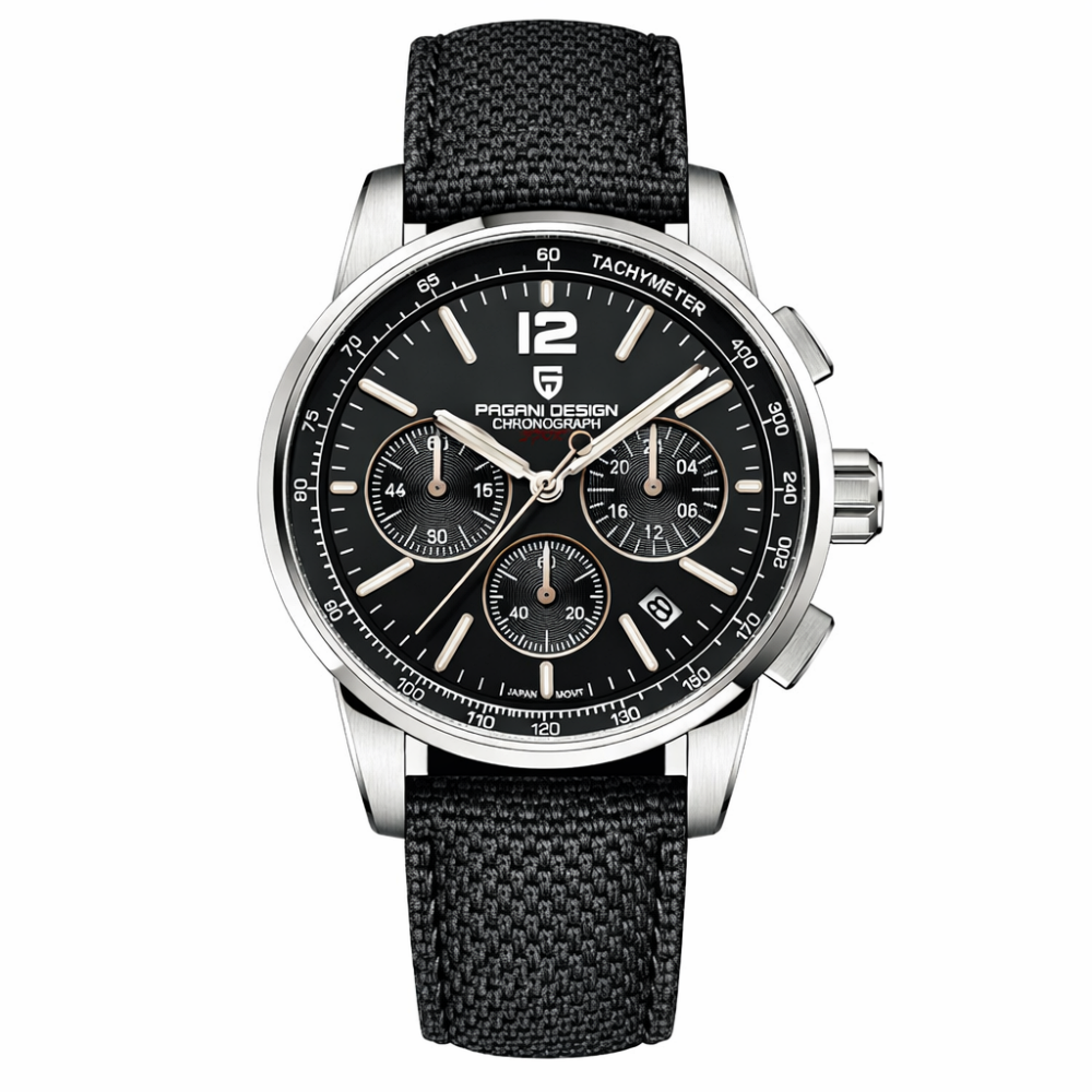 Часы Pagani Design YS008 Silver-Black – идеальный выбор для современного мужчины. Изготовленный из нержавеющей стали этот стильный аксессуар обеспечивает водонепроницаемость до 100 м, что делает его пригодным для различных условий. Благодаря сапфировому стеклу, часы устойчивы к царапинам, а нейлоновый ремешок обеспечивает комфорт во время ношения. Имеет круглую форму корпуса размером 41 х 41 мм и оснащен кварцевым механизмом. Люминесцентная подсветка и функция хронографа делают его еще более функциональным. Часы доступны в серебристом корпусе с черным ремешком и представлены в классическом и casual стилях. Гарантия на изделие составляет 12 месяцев.