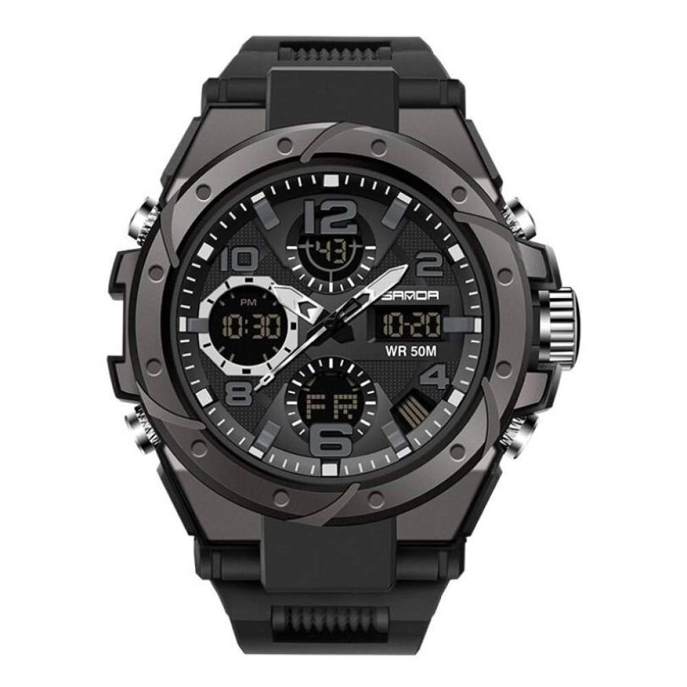 - Размеры и Дизайн: Мужские часы Sanda 6008 имеют круглую форму корпуса диаметром 48 мм и толщиной всего 18 мм, что делает их комфортными для ношения. Черный пластиковый корпус придает им стильный вид, а также обеспечивает легкость при использовании. Ремешок из высококачественного каучука длиной 26 см и шириной 18 мм гарантирует надежное крепление на запястье.