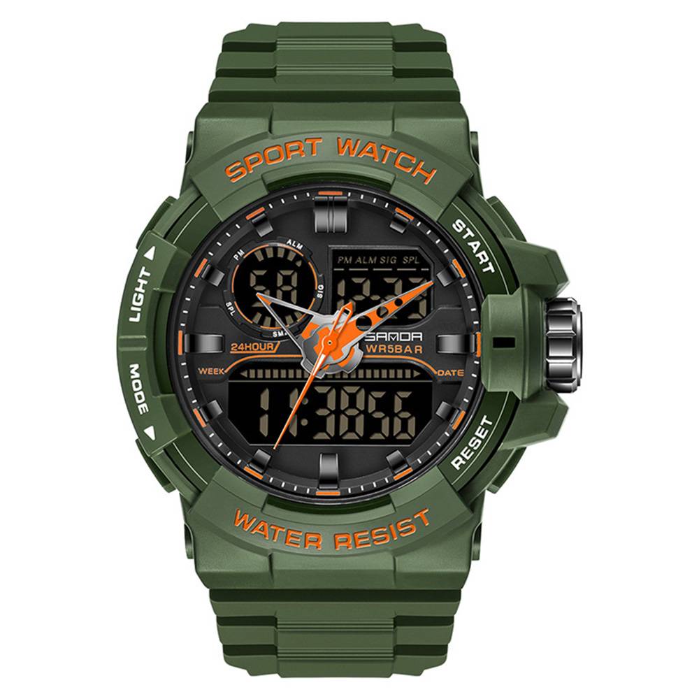 Часы Sanda 6025 Army Green – это стильный и функциональный аксессуар для мужчин, сочетающий в себе современный спортивный дизайн и практичность. Изготовлен из полиуретана, он имеет водонепроницаемость до 50 м, что позволяет использовать его на занятиях водными видами спорта. Кварцевый механизм обеспечивает точность времени, а комбинированный стрелочно-электронный циферблат оснащен функциями будильника, календаря и секундомера. Люминесцентная подсветка позволяет удобно читать показания в темноте. Часы имеют круглую форму корпуса и удобный каучуковый ремешок, что обеспечивает комфорт во время ношения. Размеры часов составляют 52 х 48 мм, их вес – 64 г. Часы доступны в зеленом цвете, что подходит для активных мужчин. Гарантия на изделие составляет 12 месяцев.
