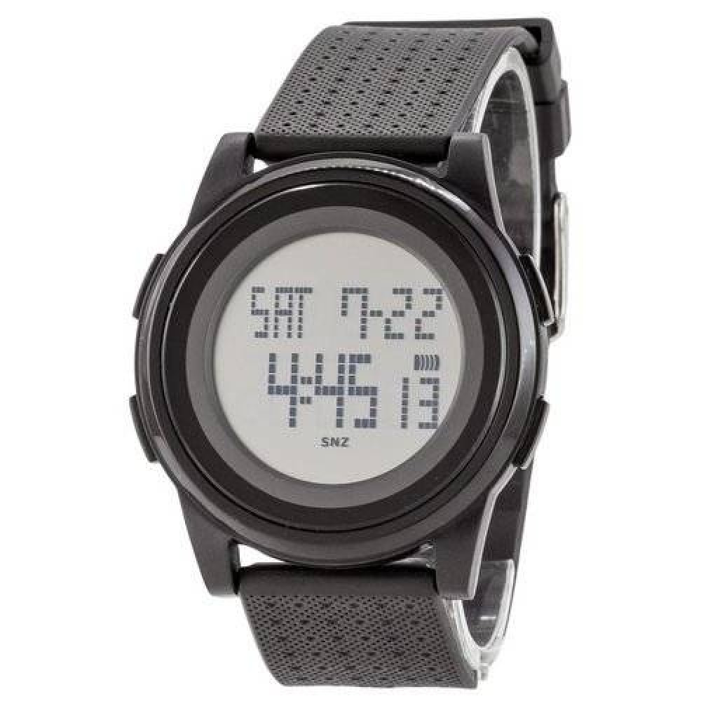 Электронный механизм с арабскими цифрами на циферблате предоставляет быстрый доступ ко времени, дате, дню недели, а также функциям будильника, секундомера, второго часового пояса и хронографа. Благодаря электролюминесцентной подсветке часы остаются видимыми в темноте. Диаметр корпуса – 45 мм, толщина – 8 мм, а вес – всего 45 г, что делает его удобным для ежедневного использования. Гарантия на часы составляет 12 месяцев.