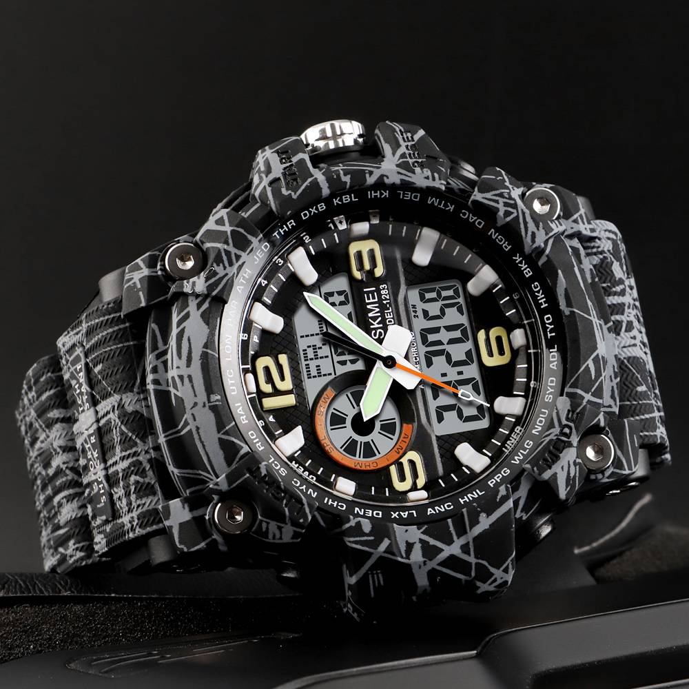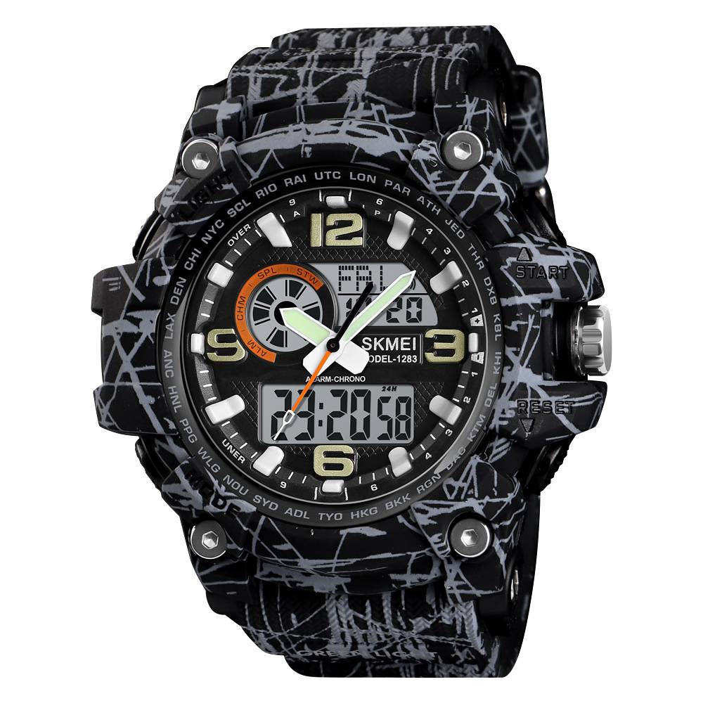 Часы Skmei 1283 Gray-Black объединяют стиль и функциональность благодаря своему спортивному и армейскому дизайну. мм и толщиной 18 мм обеспечивает надежную и удобную посадку. на запястье.