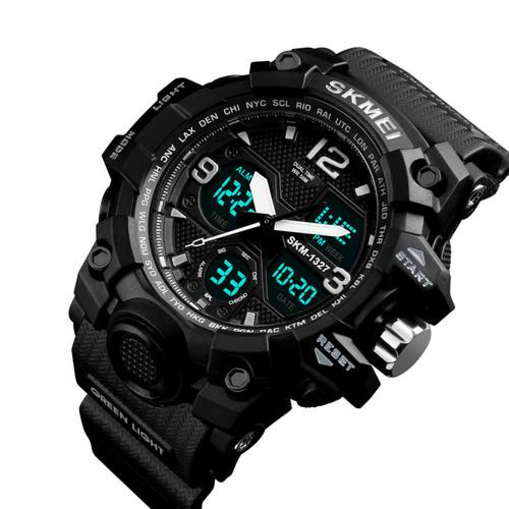 Часы Skmei 1327BK All Black – это идеальный выбор для активных мужчин, которые ценят спорт и стиль. Модель обладает черным пластиковым корпусом диаметром 52 мм и толщиной 17 мм, что обеспечивает надежность и легкость. Водонепроницаемость до 50 WR позволяет использовать часы на занятиях спортом и в условиях повышенной влажности. Оснащенный кварцевым и электронным механизмом, он предлагает широкий спектр функций: отображение часов, минут, секунд, даты, дня недели, месяца, а также секундомер, будильник и подсветка. Длина ремешка составляет 25 см и застегивается классически. Гарантия на часы – 12 месяцев. Произведено в Китае.