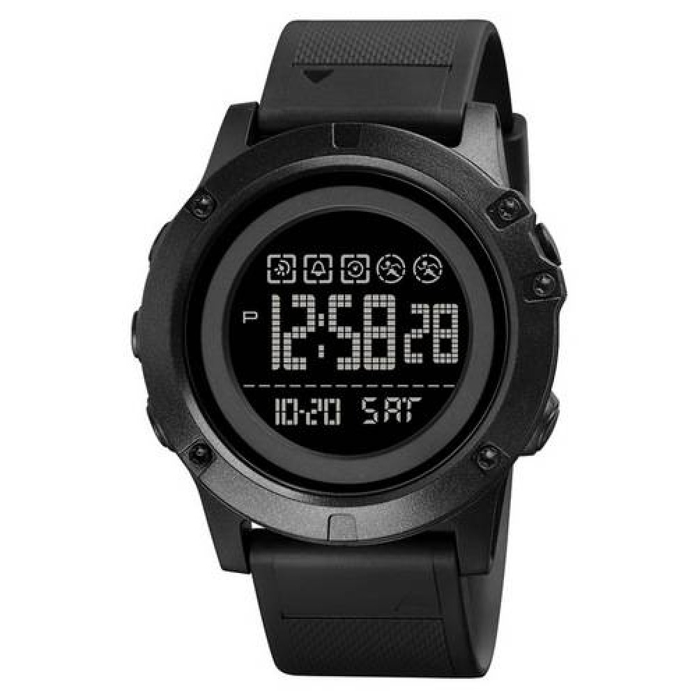 Часы Skmei 1727 All Black – это стильный спортивный аксессуар для мужчин. Он обладает водонепроницаемостью до 50 WR, что делает его подходящим для активного образа жизни. Корпус часов изготовлен из пластика, его диаметр составляет 52 мм, а толщина – 15 мм.