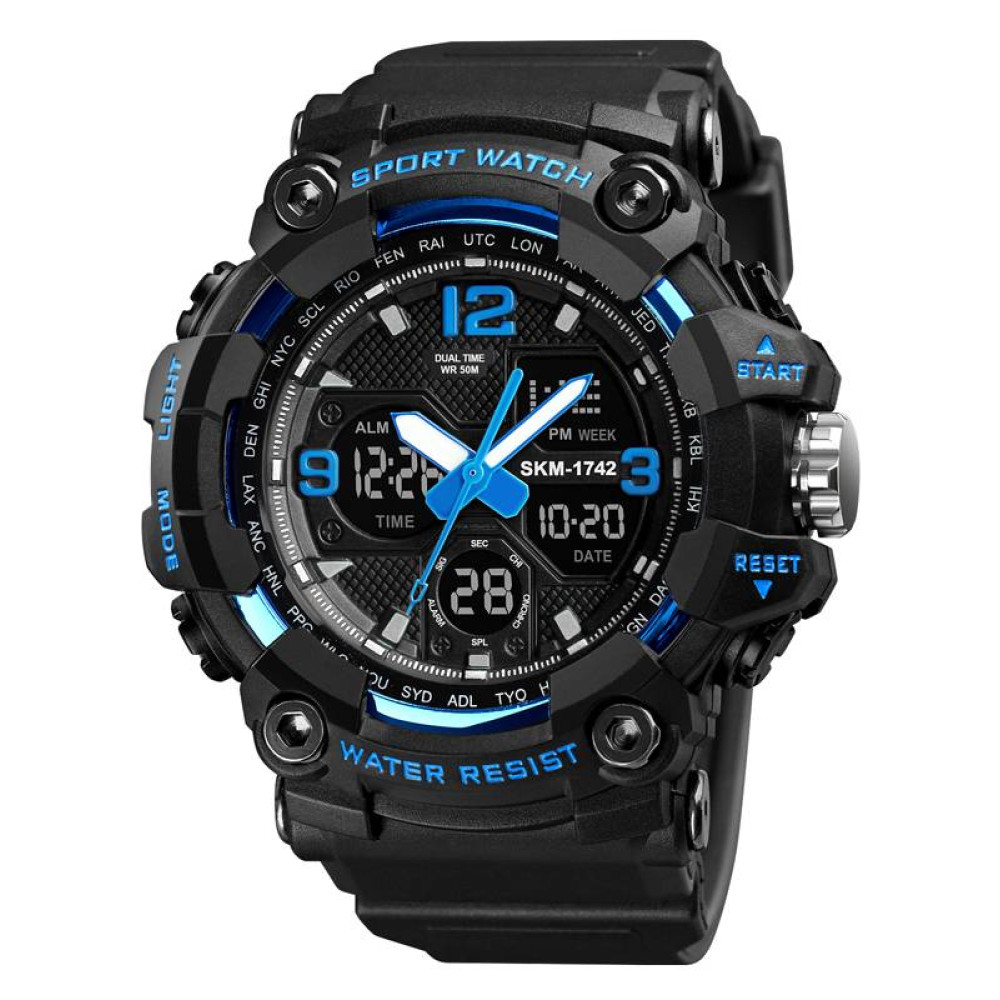 Часы Skmei 1742 Black-Blue – это стильный спортивный аксессуар для мужчин, сочетающий в себе функциональность и эстетику. Он оснащен водонепроницаемостью до 50 метров, что позволяет комфортно пользоваться часами во время купания или занятий спортом. Корпус выполнен из прочного полимера, а ремешок – из каучука, что обеспечивает удобство при ношении.
