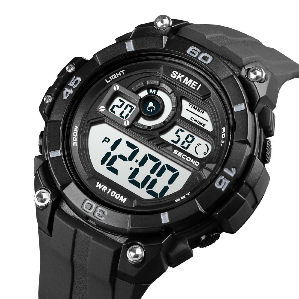 Корпус часов изготовлен из прочного полимера, а акриловое стекло надежно защищает электронный циферблат, отображающий часы, минуты, секунды, день недели и число. Его классический круглый дизайн легко сочетается с любым стилем одежды, а люминесцентная подсветка обеспечивает удобство в темноте.