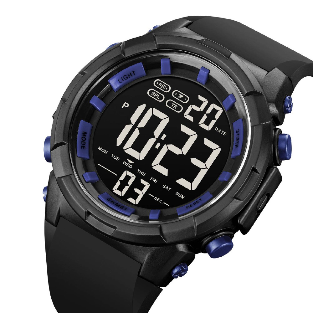 Часы Skmei 1845BU Blue - это современные мужские электронные часы, сочетающие стиль и функциональность. Он имеет круглый корпус диаметром 51 мм, изготовлен из прочного полиуретана и дополнен надежным каучуковым ремешком. Модель отличается водонепроницаемостью до 50 м, что делает ее идеальной для активных занятий.