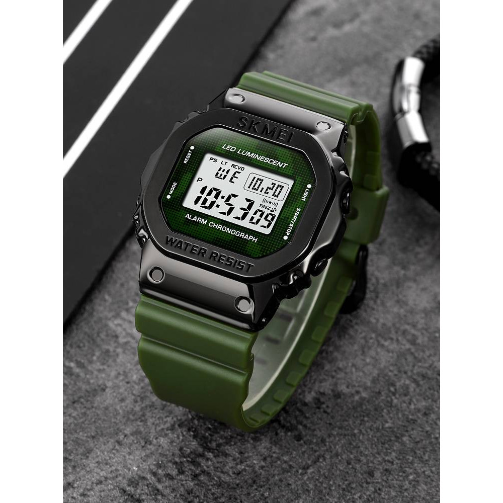 Часы Skmei 1851AG Army Green — стильный выбор для активных людей. Он обладает водонепроницаемостью до 30 метров, что делает его идеальным спутником для различных приключений. Корпус изготовлен из металла черного цвета, а ремешок из каучука болотного оттенка обеспечивает комфорт при ношении. Цифровой циферблат оснащен электролюминесцентной подсветкой, позволяющей легко считывать время в темноте.