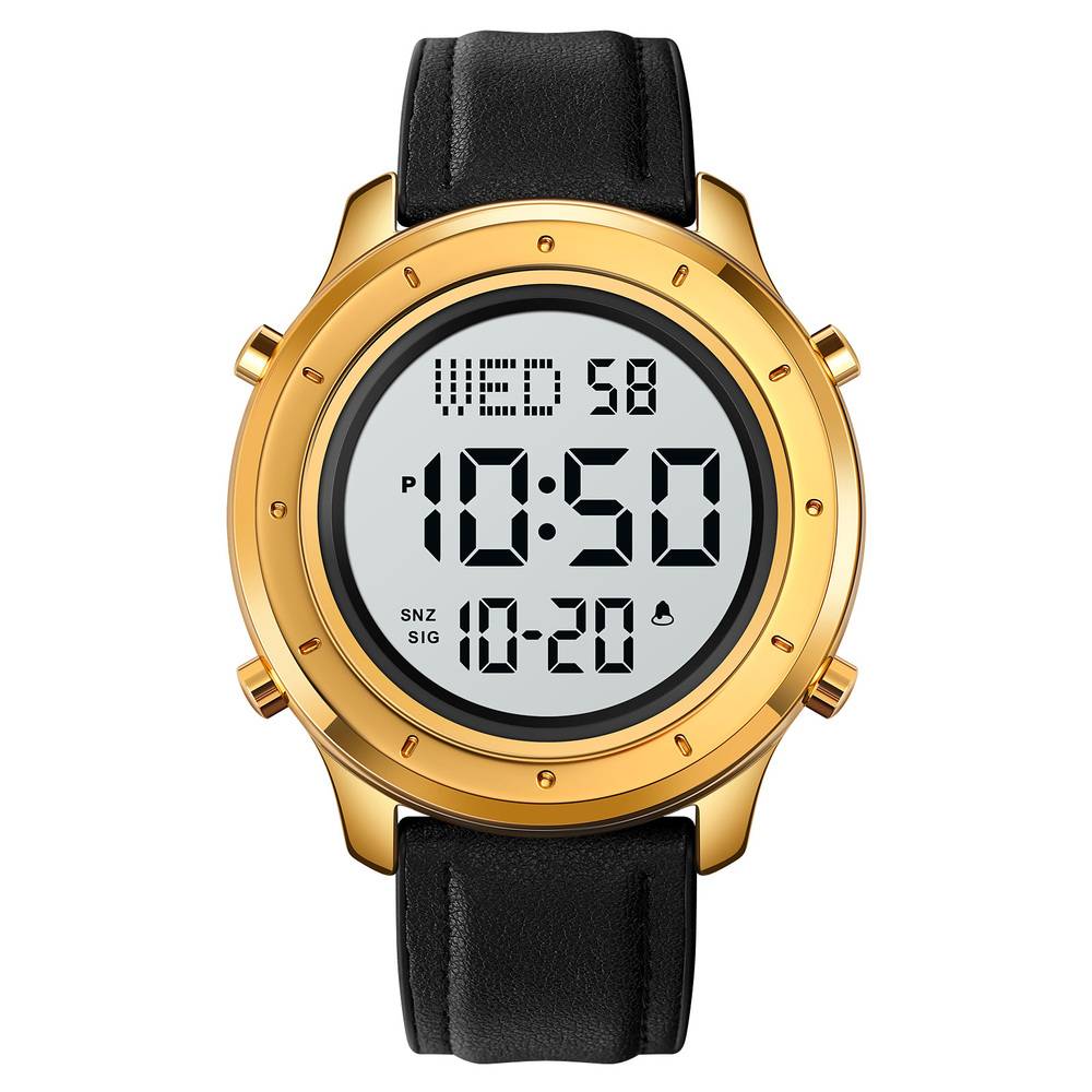 Часы Skmei 1864LGDWT Gold-White Leather – стильный аксессуар для современного мужчины. Изготовлены из металлического корпуса золотистого цвета, они совмещают стильный дизайн и практичность. Кожаный ремешок черного цвета обеспечивает комфорт и надежность. Часы обладают водонепроницаемостью до 30 метров и электронным механизмом, гарантирующим точное время. Функции включают будильник, календарь и секундомер, а электролюминесцентная подсветка позволяет удобно использовать их в темноте. Цифры на циферблате выполнены арабскими, а индикация включает часы, минуты, секунды, день недели и число. Размеры часов составляют 53 х 47 мм, вес – 70 г. Бренд Skmei предлагает 12-месячную гарантию на эту модель.